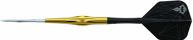 The Caliburn steel tip darts collection includes plenty of designs with darts in black titanium, gold and blue coatings to cater for the preferences of every player. The Caliburn Sandy II Dart is a visually striking dart from this range and is made from a premium 95% tungsten. This dart features a straight barrel with a ring grip and gold coating at the front and a dot grip and black coating at the rear, to cater for players who hold the dart at the front or rear of the dart.