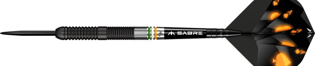 The barrel leads to a Mission Sabre shaft in black which keeps the flight firmly in place. The dart is complete with a black point and the Mission logo is laser-etched into the rear of the barrel.