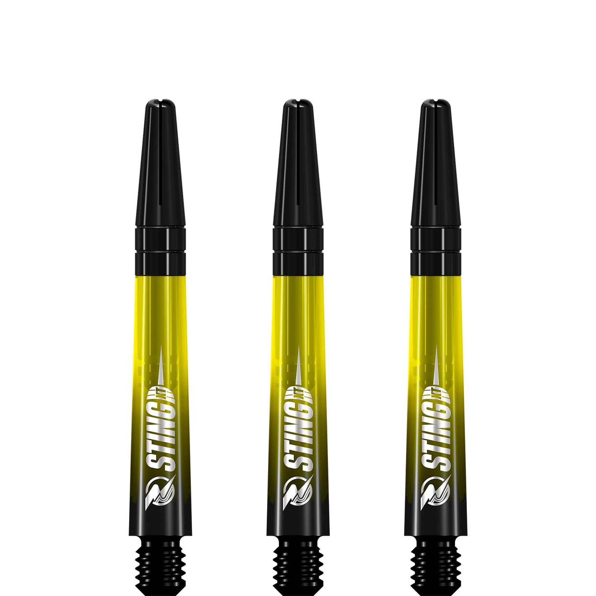 Ruthless Sting XT Dart Shafts - Polycarbonate - Gradient Black & Yellow - Black Top - Short is backordered and will ship as soon as it is back in stock.